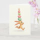 Cette carte représente un lapin brun avec de longues oreilles et une queue blanche touffue qui se précipite sur un fond doux et crémeux 🐇. Ses bras pliés et ses grands yeux lui donnent un air impatient et attentionné, comme s'il se hâtait d'apporter une petite surprise à quelqu'un de spécial. Équilibrée sur sa tête, une haute pile de quatre œufs pastel rose, jaune et vert menthe, décorés de rayures et de pois. Assis tout en haut, un petit compagnon lapin portant une simple petite casquette tend les pattes ouvertes comme s'il partageait un moment de joie et d'amitié 🐰. Les ombrages doux et les transitions de couleurs lisses font que le duo paraît arrondi et tactile, tandis que le fond vide attire toute l'attention sur leur mission commune. Un court message de Pâques apparaît près du haut dans une couleur printanière douce, avec une ligne de texte plus petite glissée en dessous dans une teinte plus claire