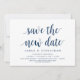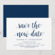 Carte de changement de date. Voici l'invitation de mariage reprogrammée (reportée / report) carte (Enregistrez notre nouvelle date), dans un design moderne minimaliste et épuré, avec une police Navy Blue.