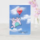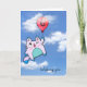 Illustration mignonne de kitty avec ballon rouge flottant dans les nuages pour 6ème anniversaire.