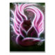 Carte avec Amethyst Fairy Cat de Michaeline McDonald. Un grand chat noir et moelleux aux ailes roses éclatantes se dresse contre un ciel étoilé. Copyright Arwork © 2006 Michaeline McDonald.