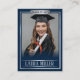 Célébrez votre diplômé en style avec cette élégante carte de trading bleu et argent! Entièrement modifiable, cette conservation est dotée d’un design sophistiqué, d’un texte personnalisable et d’un emplacement pour la photo du diplômé. Parfait pour les annonces, les faveurs de fête ou les cadeaux de fin d'études uniques, cette carte design fait de votre diplômé la star du moment !