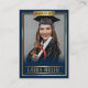 Célébrez votre diplômé en style avec cette élégante carte bleue et or! Entièrement modifiable, cette conservation est dotée d’un design sophistiqué, d’un texte personnalisable et d’un emplacement pour la photo du diplômé. Parfait pour les annonces, les faveurs de fête ou les cadeaux de fin d'études uniques, cette carte design fait de votre diplômé la star du moment !