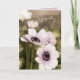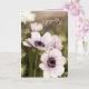 Photographie de fleurs d'anémone pavot pourpre dans un effet vintage doux imprimé sur cette carte de condoléances entièrement personnalisable avec le texte « Je pense à vous en cette période difficile » imprimé à l'intérieur que vous pouvez conserver, remplacer ou supprimer si vous le souhaitez.