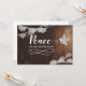 Exprimez votre sympathie à quelqu'un avec cette carte élégante, présentant le message "Peace for your grieving hearts". Le design apparaît sur fond de bois avec une colombe artisanale et des accents de ruban de dentelle sur les bordures supérieure et inférieure (qui peuvent être supprimés). L'intérieur peut être personnalisé mais comporte ce message, "Thinking of you during your time of sorrow and sending prayers and heartfelt sympathy to you and your family."