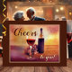 Greeting card featuring in original painting by ©Anne Vis of a table with a wine bottle and glass with grapes Beautiful for a birthday, retirement or other celebration.