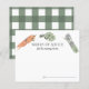 Cette mignonne carte de conseil de baby shower "bébé cultivé localement" sans distinction de genre pour les agriculteurs pour la carte de boîtier mommy-to-be dispose d'un arrière - plan blanc avec des légumes et des fruits en aquarelle. À l'envers, on retrouve un arrière - plan blanc avec des motifs à chèques en vichy/buffles verts. Personnalisez-vous pour répondre à vos besoins. Vous pouvez trouver des produits correspondants dans mon magasin.