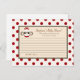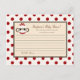 Ces adorables cartes de conseil écrites Red Sock Monkey sont un complément parfait à tout baby shower ou fête d'anniversaire. Il vous suffit de remettre ces cartes à vos invités, ainsi que des stylos Sharpie à pointe fine. Vos invités peuvent alors noter tous les conseils qu'ils ont pour la nouvelle maman d'être ou pour le garçon ou la fille d'anniversaire. Ils sont imprimés à une taille de 4,25 po x 5,6 po sur un stock de couverture de 120 lb ultra-lourd brillant (stock de carte). Nous avons une ligne entière consacrée à ce design ici à zazzle store sous l'onglet * Design Collections menu pour inclure des invitations (5x7), Étiquettes de retour, Étiquettes de messagerie, Envelope Seals, Timbres d'étape, Cup Cake Picks, Water Bottle Wrappers, Hershey's 1.55 oz. Grandes barrettes, Stickers miniatures Hershey's, Sac à Popcorn Micro-Ondes, Cartes de Place Écrits, Toppers à Sac, Cartes de Remerciement FLAT (4x5), Cartes de Remerciement FLADED (4x5), Balises de Faveur, Cartes de Menu, Cartes à Monnaie, Couvercles Lollipop, Signets, Cartes de Bingo, Cartes Marqueurs, Bingo Card Call Out Sheets, Writable Advice cards (4x5), etc.
