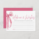 The Blush Pink Bow : She's Tying the Knot Fête des mariées Advice & Wisses Card Game est une activité sincère et significative pour les invités à partager leur sagesse et leurs voeux avec les futurs mariés. Chaque client dispose d'une carte où il peut noter ses conseils, ses mots d'encouragement et ses voeux pour le couple heureux. Ces cartes sont ensuite collectées et peuvent être lues à haute voix pendant la douche ou gardées comme un souvenir précieux pour que la future mariée chérit pendant les années à venir. C'est une belle façon pour les invités de montrer leur amour et leur soutien alors que la mariée s'embarque dans ce nouveau chapitre de sa vie.
