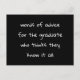 Créez vos propres mots amusants de remise de diplômes de la carte de conseil pour la célébration de votre fête de remise de diplômes. Demandez aux invités d'écrire des mots de conseil pour votre groupe préféré. Design noir et blanc. "Paroles de conseils pour le diplômé qui pense qu'il sait tout". Magnifique carte mémoire de remise de diplômes.