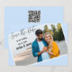 Conception décontractée avec l'apparence et la sensation d'une photographie avec une bordure blanche. Au dos de la carte, il y a un code QR (que vous pouvez créer) pour plus d'informations sur les événements du mariage.