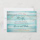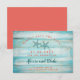 La carte de conservation de date moderne présente un fond en bois rustique de couleur turquoise. Deux étoiles de mer ajoutent une touche de plage et représentent le couple fiancé. La couleur corail de la police ajoute un contraste frais. Cette carte est idéale pour un mariage à destination, un mariage sur la plage ou un mariage au bord de l'océan. L'effet rustique est parfait pour un événement à thème de plage cosy.