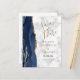 Cette élégante carte de conservation de mariage moderne présente une bordure d'agate aquarelle bleu marine ornée de paillettes dorées fausses. Le texte personnalisable de couleur or et noir apparaît sur un fond de marbre gris et blanc. Le verso répète les informations, ainsi qu'une adresse de retour personnalisable.