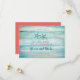 La carte de conservation moderne présente un fond en bois rustique de couleur turquoise. Deux étoiles de mer ajoutent une touche de plage et représentent le couple fiancé. La couleur corail de la police ajoute un contraste frais. Cette carte est idéale pour un mariage à destination, un mariage sur la plage ou un mariage au bord de l'océan. L'effet rustique est parfait pour un événement à thème de plage cosy.