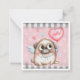 Un carlin mignon tenant un ballon qui dit "Bonjour" Vous pouvez customiser le texte en quelques clics seulement.