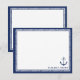 Cartes de notes nautiques personnalisées avec votre nom sous une ancre bleue. Les cartes nautiques comportent une bordure bleue avec une corde blanche.