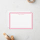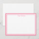 Custom name Note Card shown in white with a flamingo pink color double border trim.