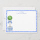 Cette carte à notes chic présente un topiaire rond avec un arc rayé bleu et blanc dans un pot de chinoiserie. La bordure autour de la carte est un cadre bleu en bambou. Vous pouvez personnaliser avec votre nom. L'arrière de la carte a un motif en bambou en diagonale avec de petits arcs bleus.