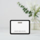 Faites une impression durable grâce à nos Cartes de Noix et d'Or. Cette simple carte professionnelle présente le logo de votre entreprise et le nom de votre entreprise en typographie classique noire, tandis que la zone ci-dessous offre de l'espace pour votre adresse, des informations de contact ou du texte personnalisé dans une élégante typographie classique dorée. Parfait pour les notes d'appréciation des employés, les notes de remerciement des clients, et plus encore. L'espace blanc pour votre note est encadré en noir avec des angles arrondis pour une touche professionnelle. Le dos des caractéristiques de la carte est noir solide, ajoutant à son charme intemporel.