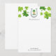 Cartes de notes de papeterie personnalisées avec un design de lutin et de trèfle de la Saint-Patrick peint à la main par Shelby Allison.