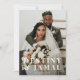 Une plaque photo mariage moderne design pour jeunes mariés avec vos noms et votre date de mariage. Recouvert d'une superposition de type gras sur une photo élégante. Une carte de note élégante à envoyer à vos amis et à votre famille.