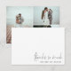 Nom simple Script 3 Mariage photo Merci. Beaucoup d'espace blanc pour que vous puissiez écrire votre propre message spécial à la réception. Avec un style d'écriture à la mode pour Thanks So Much et facilement personnaliser vos noms et remplacer l'exemple d'image sur le dos par votre propre.