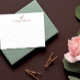 Cartes Monogrammes en blanc avec votre initiale et votre nom en rouge foncé. Une élégante carte doublée personnalisée avec votre monogramme dans un design simple.
