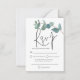 Une alternative de 3,5 po x 2,5 po de charme, S'IL VOUS PLAÎT NOTER si vous êtes aux États-Unis, cette taille est plus petite que le minimum requis pour l'affranchissement américain. Veuillez donc choisir la taille 3,5 po x 5 po, car elle est destinée à vous être envoyée par la poste. Ce design élégant a une élégante branche feuille d'eucalyptus bleu qui court en haut à droite avec un script stylé pour RSVP en noir. Le reste du texte peut être facilement personnalisé à vos mots. Un arrière - plan bleu turquoise coordonné est à l'arrière qui peut être changé à une autre couleur de votre choix via l'option customiser plus loin.