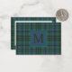 Cette carte de pub monogrammée preppy présente un plaid classique en vert et bleu. Personnalisez le monogramme sur le devant avec votre choix d'initiale et de nom ou de texte spécial sur le dos.
