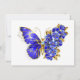 Bijoux, bleu, saphir, papillon aux fleurs pétillantes avec aile décorée de bleu, fleurs précieuses avec feuilles d'or sur arrière - plan blanc.