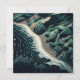 Serene Shores: This stunning top-down illustration the harmony of land and sea, featuring waves wgently breaking on sandy beaches with lush green mountains in the background. Rendered in soothing shades of dark blue-green, the artwork evokes a sense of tranquility and balance. The intricate details of the ocean’s patterns meeting the shore, paired with the trees lining the water’s edge, enhances the peaceful atmosphere. Created in a woodcut print style with simple lines and a flat design, the piece is reminiscent of hand-drawn animation, offering a timeless, serene depiction of nature's beauty.