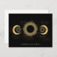 Un style de carte céleste éthérée, avec un mandala solaire en or moderne avec rayons solaires, et les phases de la lune, avec un joli type de signature script moderne. Effet de feuille d'or faux.