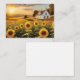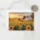 Une ferme blanche se trouve sur une colline surplombant un vaste terrain de tournesol au coucher du soleil avec des collines ondoyantes dans l'arrière - plan, créant un cadre rural chaleureux et idyllique avec une atmosphère paisible.