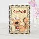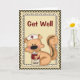 Sweet Get Well greeting card done in a country look, with a checkered border and cute graphics of a cartoon squerrl nurse holding a can of soup. Texte en red and black is fully customizable to suit your needs. Adorable card sure to make anyone feel better