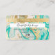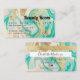 Un élégant carte de visite de style de carte de crédit peintre de coiffure et de maquillage avec une typographie de police de script moderne sur une agate de géode en or, en marbre turquoise et en or arrière - plan tendance de feuille métallique glam. tout le texte est personnalisable, ajoutez vos médias sociaux. Avec fausse bande d'or. Ajoutez votre logo, votre monogramme et votre code QR.