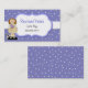 Carte de date de jeu de fille adorable faite avec une lavande, avec un arrière - plan pois blanc. Une bande blanche traverse le centre, avec une zone de texte décorative blanche bordée de lavande. Des graphismes doux de la petite fille tenant des fleurs violettes, décorent le côté gauche de la carte. Personnalisez le texte pour une grande carte de date de jeu de réseau pour maman ou fille.