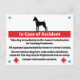 Commandez cette carte en vrac et remplissez les informations pour chacun de vos chiens. Fait pour être fixé à une caisse ou à un harnais dans la voiture pour fournir des informations critiques aux travailleurs d'urgence!