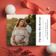 Partagez la nouvelle joyeuse de votre bébé avec cette carte élégante de déclaration de grossesse pour les fêtes. Comprend un espace pour une photo de maternité et un texte modifiable tel que la date prévue de naissance et les salutations. Parfait pour les envois postaux de Noël et le partage sur les réseaux sociaux.