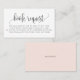 Demandez aux clients d'apporter un livre au lieu d'une carte avec cette carte simple et élégante. Il présente un script fantaisiste et une typographie simple. Ce livre pour carte bébé est parfait pour tous les thèmes et les saisons de baby shower. Personnalisez en ajoutant vos propres détails. Vous pouvez personnaliser davantage le dos de la carte en changeant l'arrière - plan rose pâle en photo ou autre image.