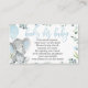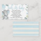 Baby shower bleu éléphant demander des cartes pour un bébé doux! Le poème dit... Une petite demande... qui ne sera pas trop difficile S’il vous plaît apportez un livre au lieu d’une carte. En signant votre livre, nous nous souviendrons de vous et partagerons votre cadeau spécial même lorsque vous n’êtes pas là!