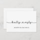 Cette carte de demande de chanson love hearts et de réponse RSVP est parfaite pour un mariage rustique. Le design minimaliste romantique présente une police de calligraphie au cœur doux et simple. Créez votre liste d'invités de mariage et votre liste de chansons pour la piste de danse en même temps ! Cette carte de réponse de mariage demande commodément aux invités s'ils pourront assister à votre mariage, et quelle chanson les fera danser.