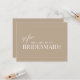 Cette carte de demande de demoiselle d'honneur moderne est plus qu'une simple invitation ; c'est un souvenir élégant que vos demoiselles d'honneur chériront comme un symbole de leur rôle dans votre voyage de mariage. Préparez-vous à faire battre leur cœur avec cette carte de demande moderne et chic !