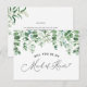 Demandez à vos amis et à votre famille de faire partie de votre mariage avec cette carte florale "Veux-tu être ma demoiselle d'honneur?" avec un eucalyptus aquarelle et un script calligraphique féminin. Des articles assortis sont disponibles. Carte de proposition de cortège de mariée