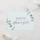 Cartes de proposition de demoiselle d'honneur pour fille porte-fleurs de mariage à motif eucalyptus minimaliste simple. Parfait pour votre papeterie de mariage de jardin ou de thème extérieur au printemps ou en été. Dans une palette de couleurs douces et subtiles de verts sarcelle aqua, de menthe pastel, de gris bleuté poussiéreux et de blanc classique simple. La police de calligraphie élégante est une caractéristique du mot demoiselle d'honneur. Ce design est parfait pour un mariage champêtre, campagnard ou de jardin. Cartes d'information de mariage à l'eucalyptus simple à envoyer aux invités. Un modèle facile à personnaliser pour votre papeterie de mariage DIY et abordable.