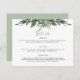 Conçue pour coordonner avec notre collection de pivoines et de feuillage, cette carte d'insertion de détails de mariage personnalisable présente des feuilles de feuillage et une police moderne. Pour une personnalisation plus avancée de ce design, par exemple en changeant la mise en page, la police ou la taille du texte, veuillez cliquer sur le bouton "PERSONNALISER" ci-dessus. N'hésitez pas à me contacter pour toute question !