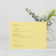 Partagez les informations importantes relatives à votre mariage de manière raffinée et sophistiquée avec cette élégante carte de détails de mariage jaune doux. Conçue pour se coordonner parfaitement avec une suite d'invitation de mariage classique, cette carte présente un fond jaune crémeux chaud, une typographie sérif épurée et une mise en page calme et éditoriale.