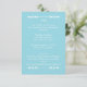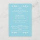 Élégante, audacieuse et d'une élégance sans effort, cette carte de détails de mariage en bleu clair et blanc fait une déclaration moderne. Avec des lignes épurées et des bordures supérieures et inférieures de bon goût, c'est le mélange parfait de design minimaliste et de style intemporel pour lancer votre célébration de manière sophistiquée.