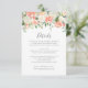 Conçue pour coordonner avec notre collection de mariage Peach and Cream, cette élégante carte d'information pour les invités présente une aquarelle de fleurs pêche et crème et un design moderne. Personnalisez cette carte avec vos détails de mariage, tels que les hébergements à l'hôtel, les informations sur la réception de bienvenue, le site web et plus encore.