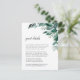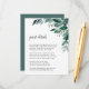 Conçues pour s'adapter à notre collection de faire-part de mariage Foliage Abondant, ces élégantes cartes d'information botanique comportent un jet d'eau de feuilles d'eucalyptus et de feuillage vert. Vous vous demandez quelles informations inclure sur un encart faire-part de mariage ? Prenez en compte des détails comme l'hébergement à l'hôtel, les codes de groupe, le transport, l'itinéraire, les informations sur la réception de bienvenue et votre URL du site Web mariage. Vous pouvez même télécharger une carte vers l'envers à l'aide de la fonction Personnaliser.