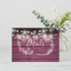 Un élégant mariage rustique détaille la fiche d'information de l'enceinte avec de jolis lampes à cordes et des fleurs dessinées à la main sur un arrière - plan de panneaux de bois rouge bordeaux. Personnalisez avec vos détails spéciaux dans la typographie stylisée. Conçu par Thisisnotme©