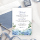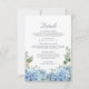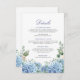Notre carte de détails Blue Hydrangea est la meilleure façon de partager les informations essentielles avec vos invités. Doté d'élégantes hydrangées d'aquarelle dans des tons bleu doux, cette carte magnifiquement conçue complète votre suite mariage tout en fournissant des détails de salle, des hébergements ou des notes spéciales de manière élégante et cohésive.